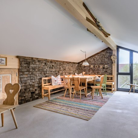 Rustic Meetings: The Alm is extraordinary – a newly built timber cottage has been transformed into a rustic, atmospheric mountain cabin with the help of 200-year-old shingles, a comfortable Bavarian corner bench as well as many historical details.